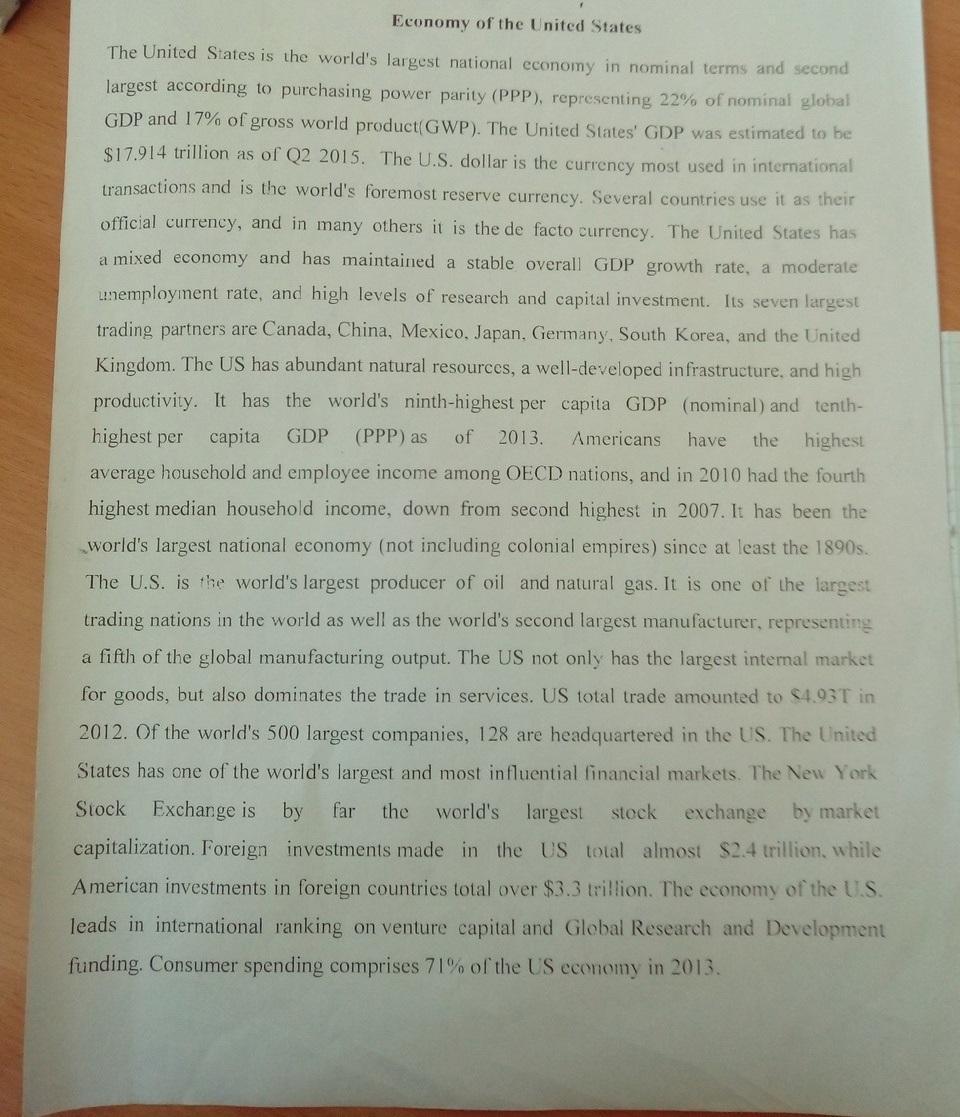 официальная валюта, и во многих других, это де-факто валюты. Я "хайтед" Ститэс смешанная экономика и бас оставались стабильными в целом темпы роста ВВП, средний уровень uneminloyineri, Ард уровней bigh из enearch и canistal инвестиций. Это семь langent торговые партнеры-Ленда. Китай. Мексика, Япония, Германия, Южная Корея и Соединенные короля кукурузы. У нас есть богатые природные ресурсы, хорошо развитая инфраструктура, и bigh