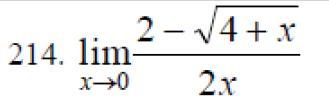 lim (x->0) (2 - √(4+x))/2x = домножаем на 2 + √(4+x) = lim (x->0) (2 - √(4+x))*(2 + √(4+x)))/2x(2 + √(4+x)) = lim(x->0) ( 4 - 4 - x)/2x(2 + √(4+x)) = lim(x->0) - x/2x(2 + √(4+x)) = - 1/2(2+√(4+0)) = 1/2(2+2) = 1/8
