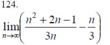lim(n->∞) ((n^2+2n-1)/3n - n/3) = lim (n->∞)( n^2 + 2n - 1 - n^2)/3n = lim (n->∞) (2n-1)/3n ={делим на n числитель и знаменатель} = lim (n->∞) (2 - 1/n)/3 = (2 - 0)/3 = 2/3