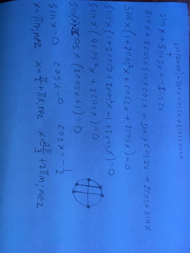 вот тупо сначала раскрываем sin 3 угла через формулу синус суммы потом преобразование с со слагаемыми и вынос синуса за скобки
