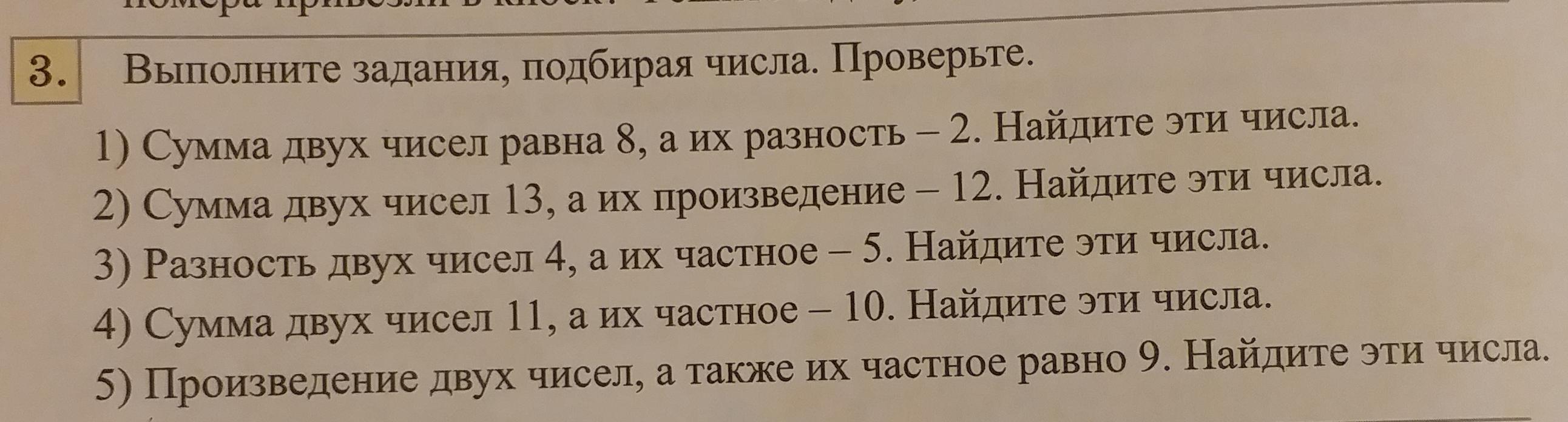 3) Пусть числа х и у. Система уравнений