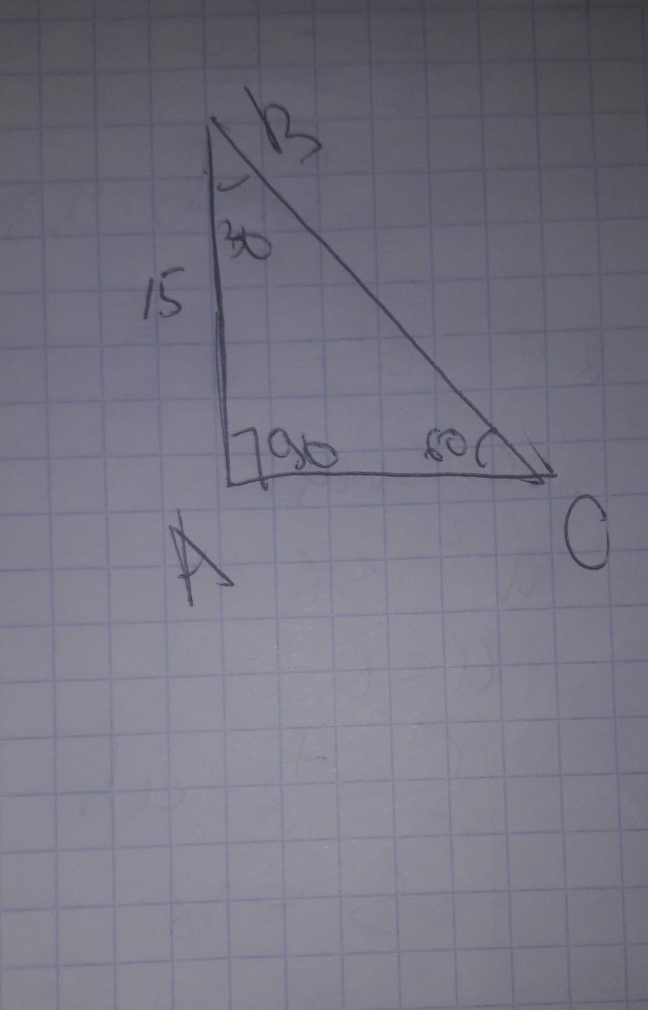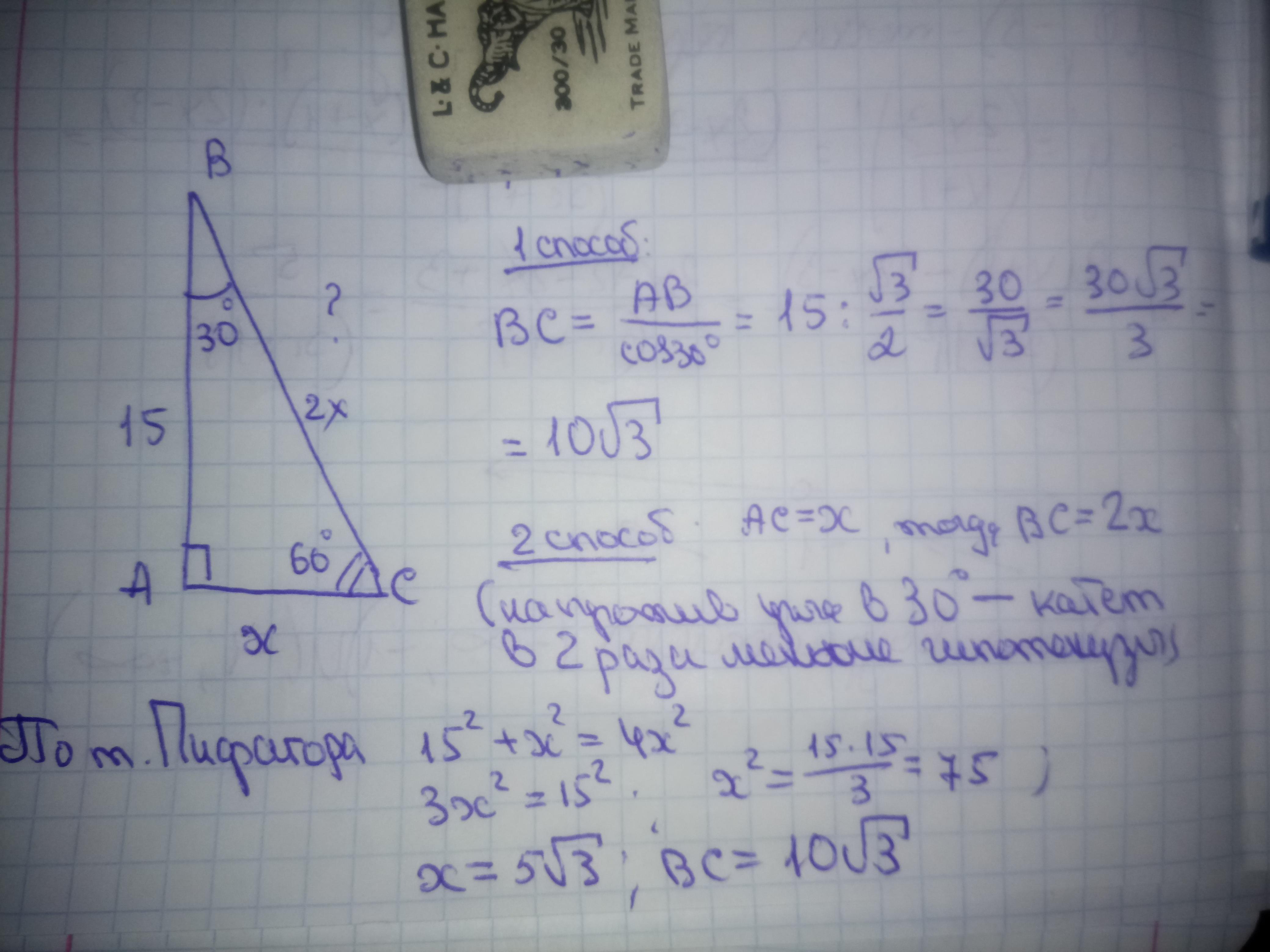 ВC=АВ/cos30°=15/0,866~17,32