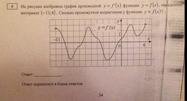 На рисунке изображён график производной y=f’(x) функции y=f(x) определённо интервале (-11;4) сколько промежутков возрастания у функции y=f(x)?
