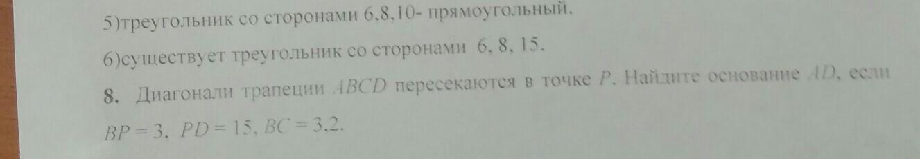 8. Диагонали трапеции ABCD пересекаются в точке Р. Найдите основание AD, если
