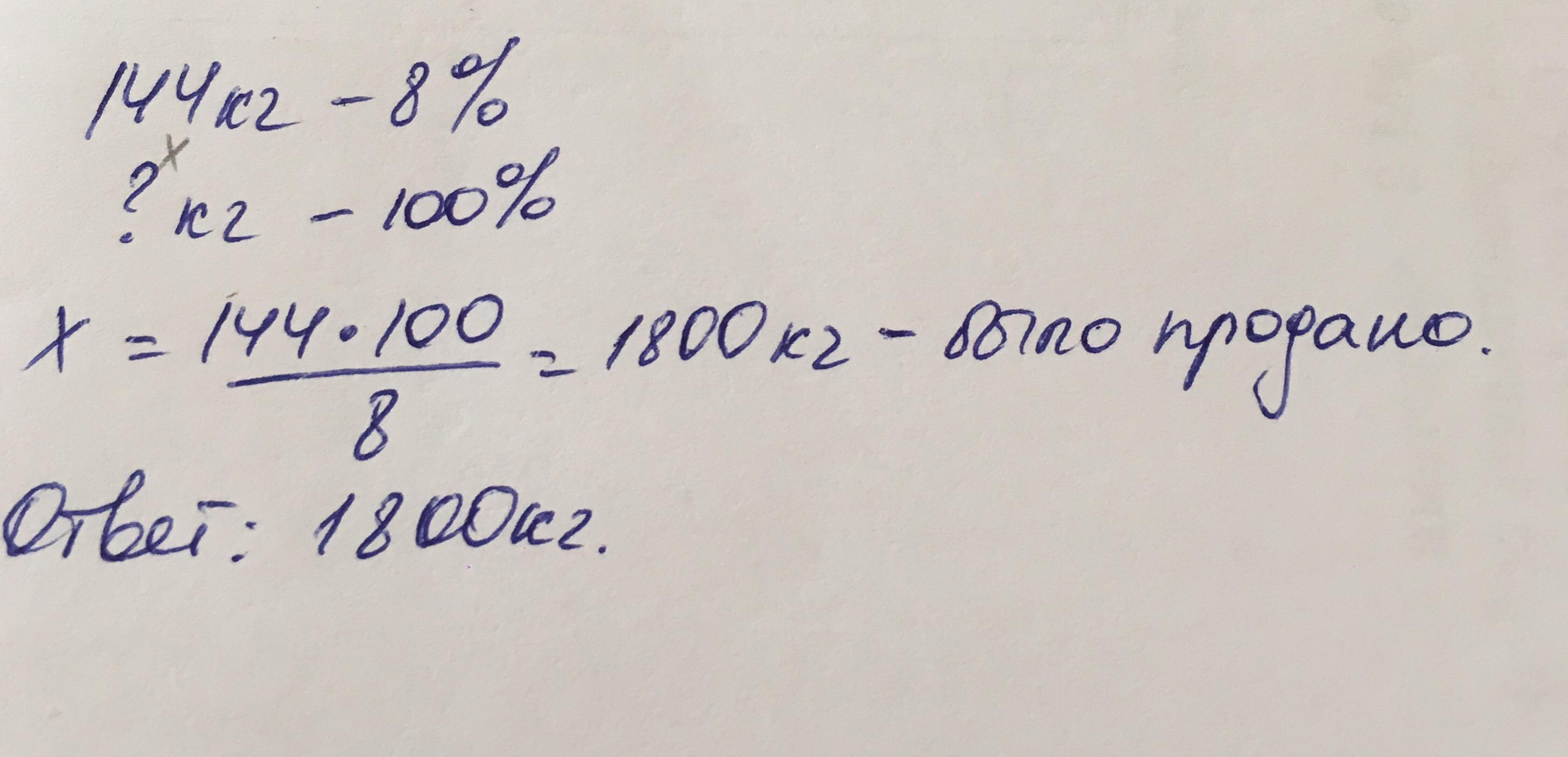 В вторник в магазине было продано 144 кг яблок, что составляет 8% всех проданных фруктов. Сколько килограммов фруктов было продано во вторник в магазине ?