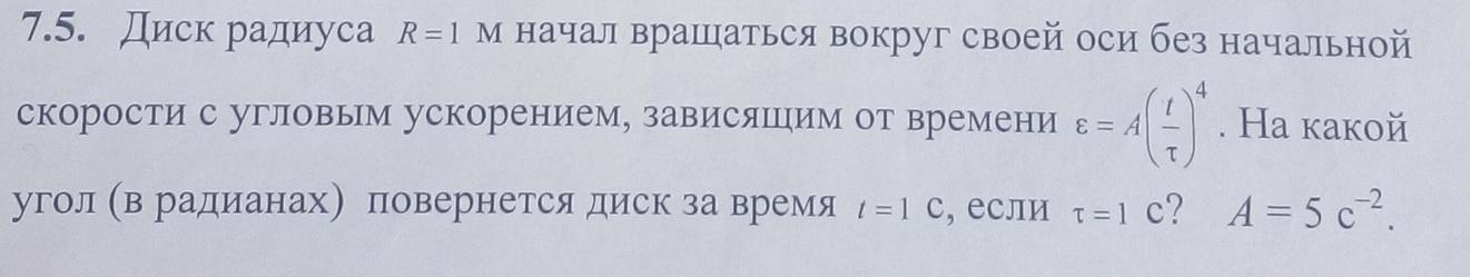 Начальные условия ф0=0 ("начал"), и w0=0 ("без..."), тогда ф(1)=5*1^6/30*1^4=1/6 [рад]