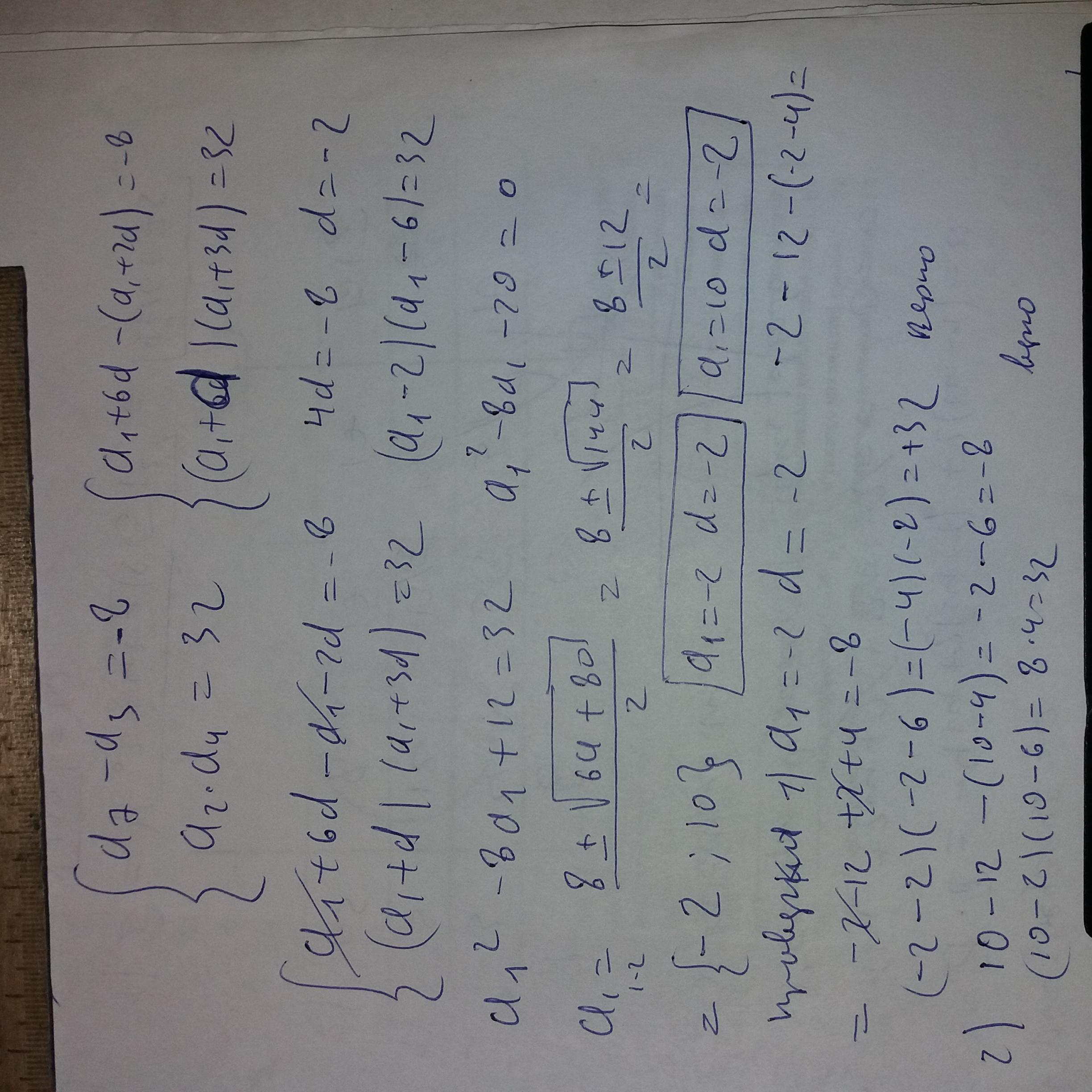 (а₁+д)(а₁+3д)=32; (а₁-2)(а₁-6)=32