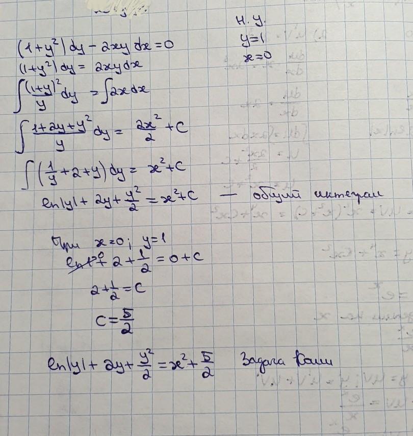 Найдите общее решение или общий интеграл дифференциального уравнения, решите задачу Коши для заданных начальных условий
