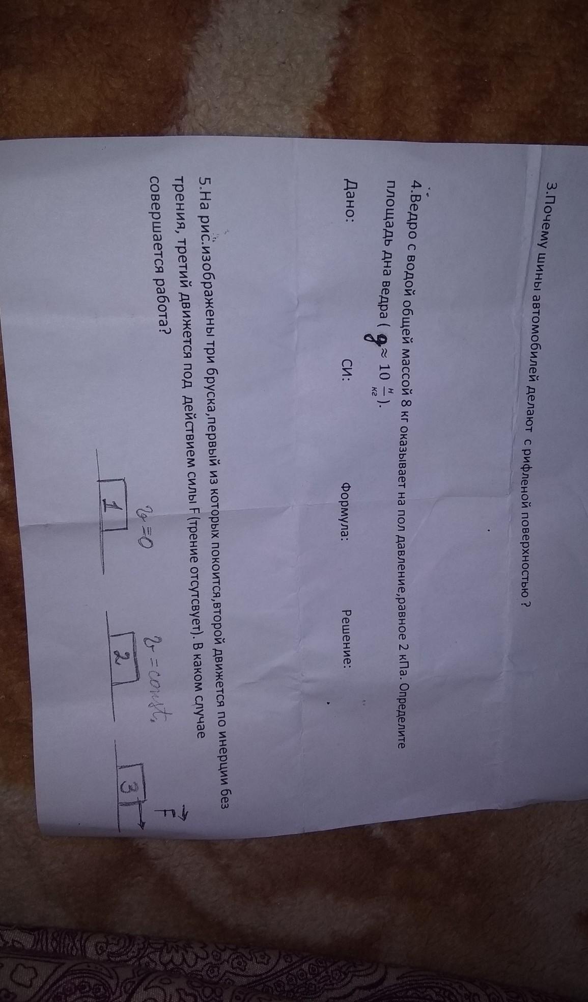 4) S= F/p =mg/p= 8кг * 10н/кг /2000Па=0.04м2