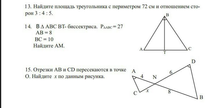 Площадь находим по формуле Герона: S=корень из p(p-a)(p-b)(p-c)