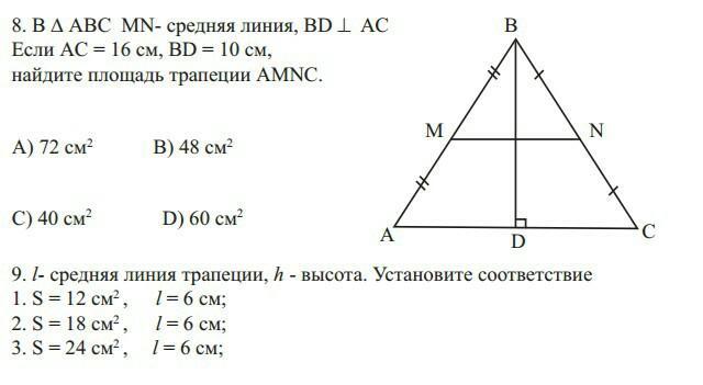 Далее по формуле нахождения площи S=(BD*DC)/2=(10*8)/2=40 саниметров квадратных