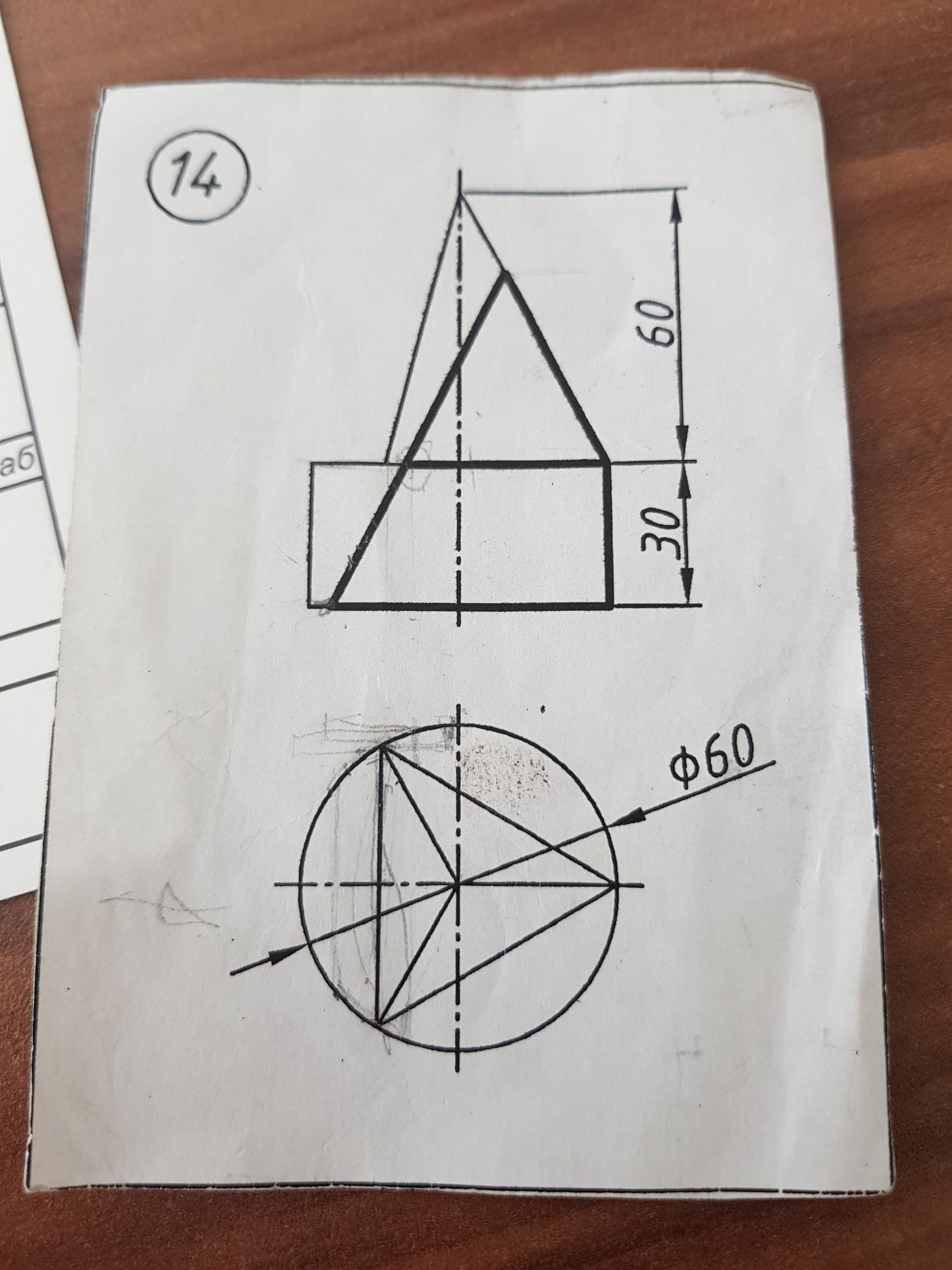 Нужно начертить 3 проекцию и сделать срез (хотя бы набросками)