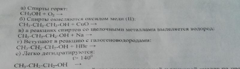 2) CH3-CH2-CH2-OH + CuO-> CH3-CH2-COH + Cu↓ + H2O