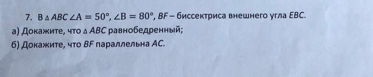 <C=<FBC=50°. Так как они накрест лежащие относительно секущей ВС,то ВF ║АС