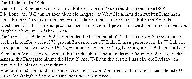 Первое в мире метро - это метро в Лондоне. Оно было построено в 1863 году. Но лондонское метро не самое длинное в мире. Оно занимает второе место после метро в Нью-Йорке. Третье место занимает парижское метро. Но московское метро тоже очень длинное и с каждым годом становится лишь длиннее. Также есть короткие метро.