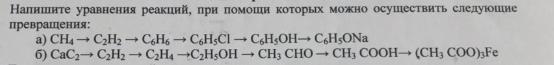 б) CaC₂ ⇒C₂H₂⇒C₂H₄⇒C₂H₅OH ⇒ CH₃CHO ⇒CH₃COOH ⇒(CH₃COO)₃Fe