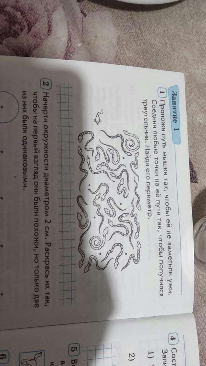 Ответ:Суть задачи то что двойная. 1 - проложить путь мышки, 2 - не обращая внимания на змей по точкам сделать треугольник