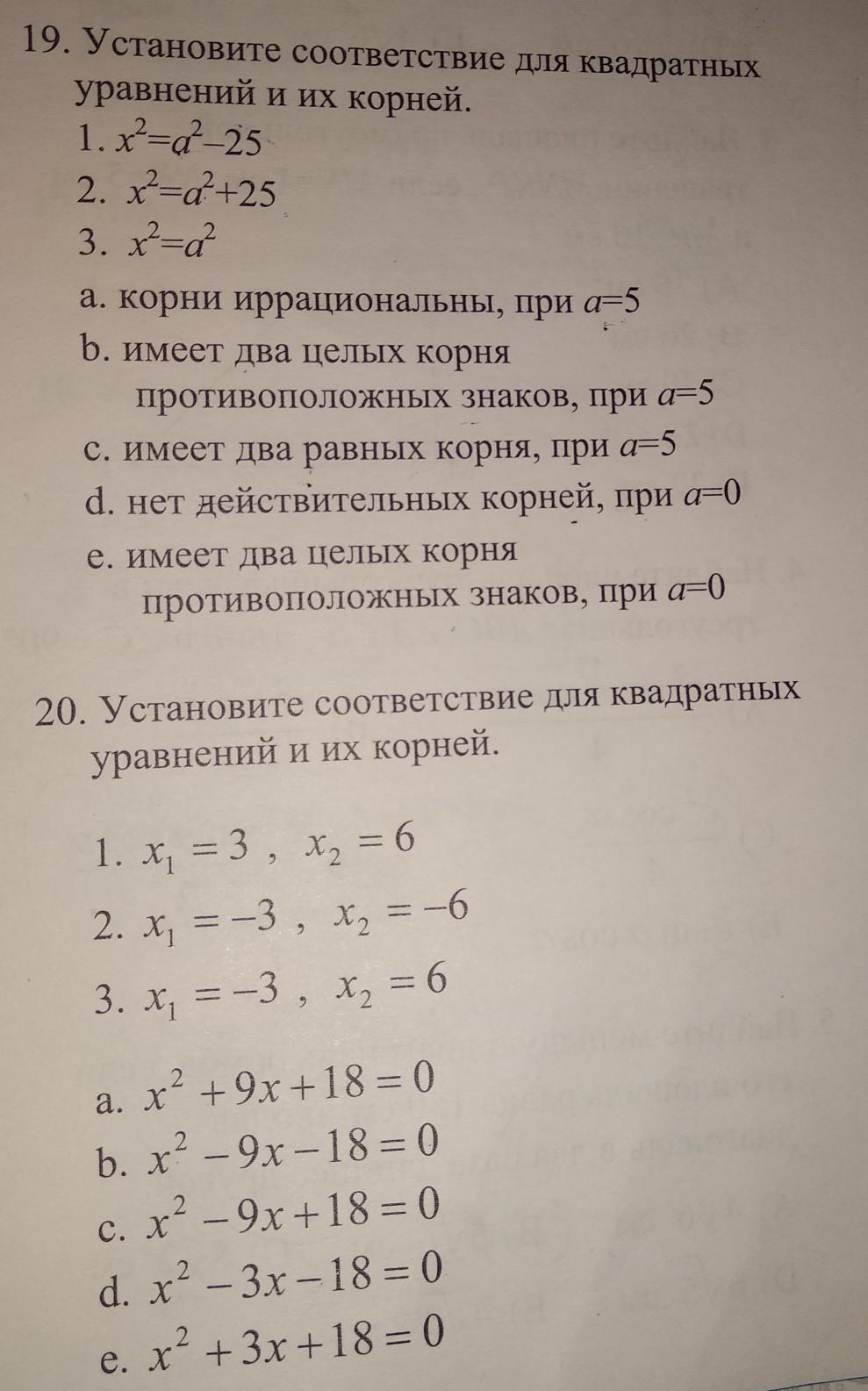 следуя из теоремы Вьетта имеем x₁*x₂=c и x₁+x₂=-b ответ 1-с 2-а 3-d