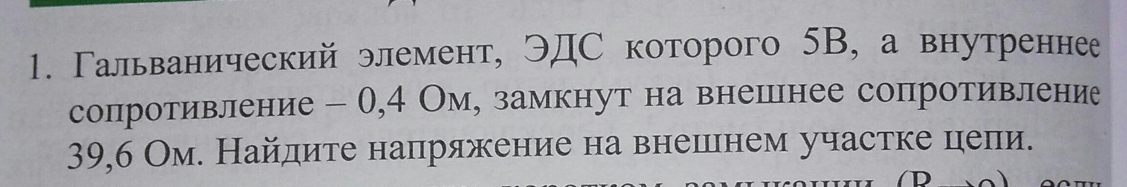 U=I*R=E*R/(R+r)=5*39,6/(39,6+0,4)=4,95 B