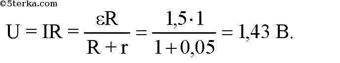 ЭДС элемента 1.5В ток его короткого замыкания 30 А. Какой будет напряжение на зажимах элемента, если его соединить с сопротивлением нагрузки величиной 1.45 Ом?