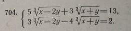 в 704 делаешь замену (x-2y)^(1/3)=u; (x+y)^(1/3)=v. Решаешь относительно этих переменных потом обратная замена и находишь x, y. В 713 аналогично: заменяешь, решаешь, обратная замена и снова решаешь