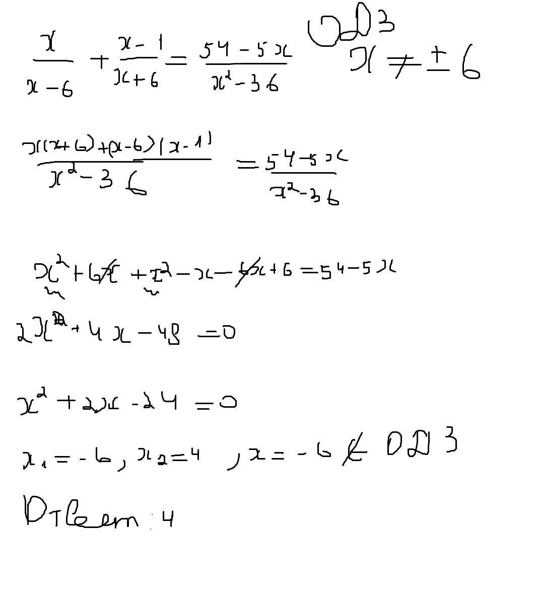 x/(x-6) + (x-1)/(x+6)=(54-5x)/(x^2-36)