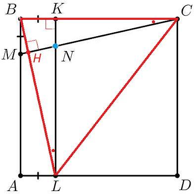 △MCB=△BLK (по двум катетам), ∠MCB=∠BLK