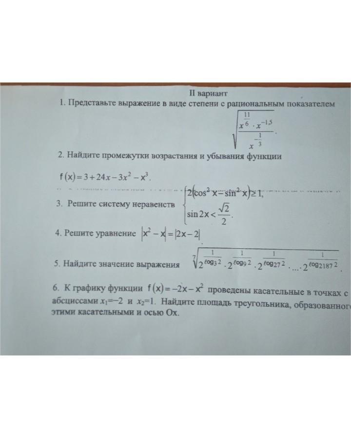 1) х^ 11/6 * x^-1,5 /x^-1/3 = x ^ (11/6 -1,5 +1/3) = x^(11/6 -3/2 + 1/3) = x ^ 2/3