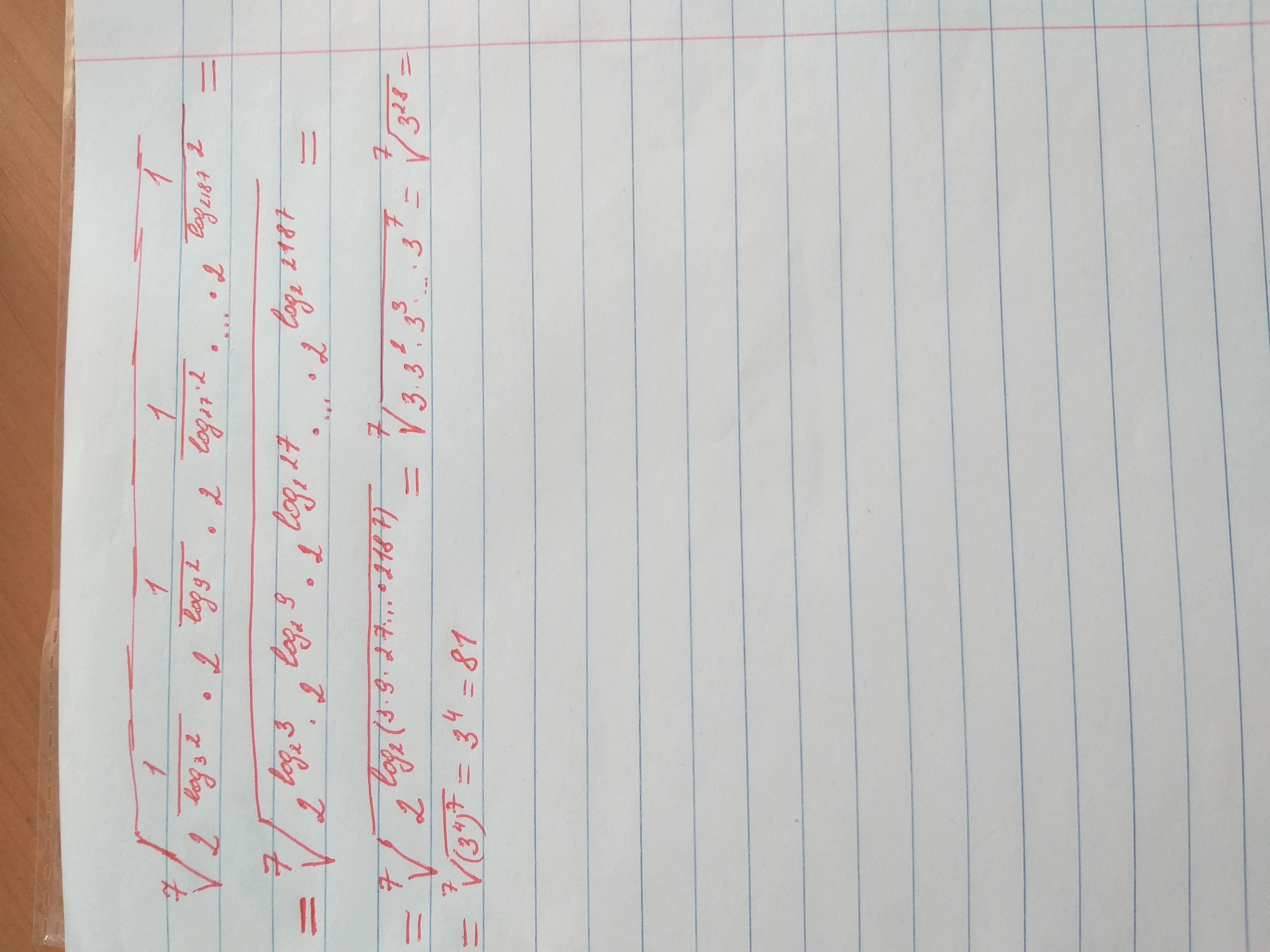 7корень из 2^1/log3^2 * 2^1/log9^2 * 2^1/log27^2*....* 2 ^1/log2187^2 найдите значение выражения