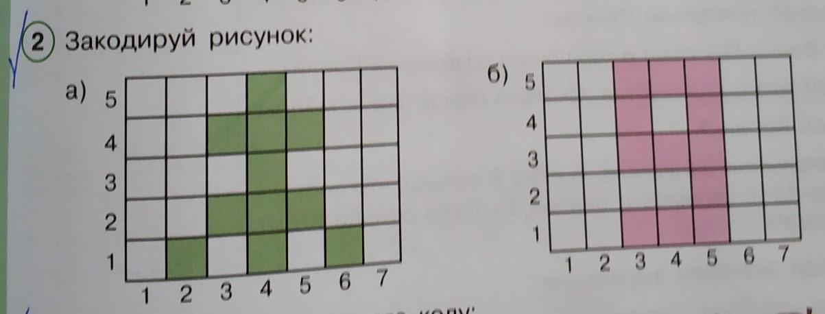 2)По принципу строка-столбец. 1 2, 1 4, 1 6, 2 3, 2 4, 2 5, 3 4, 4 3, 4 4, 4 5, 5 4. Ну и для второго рисунка аналогично...