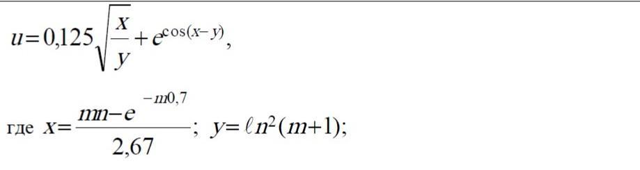 u:=0.125*sqrt(x/y)+exp(ln(e)*cos(x-y)); // Вычисление u