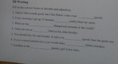 6 more attentively, fewer (здесь нельзя использовать little - less, потому что mistakes - исчисляемое существительное!)