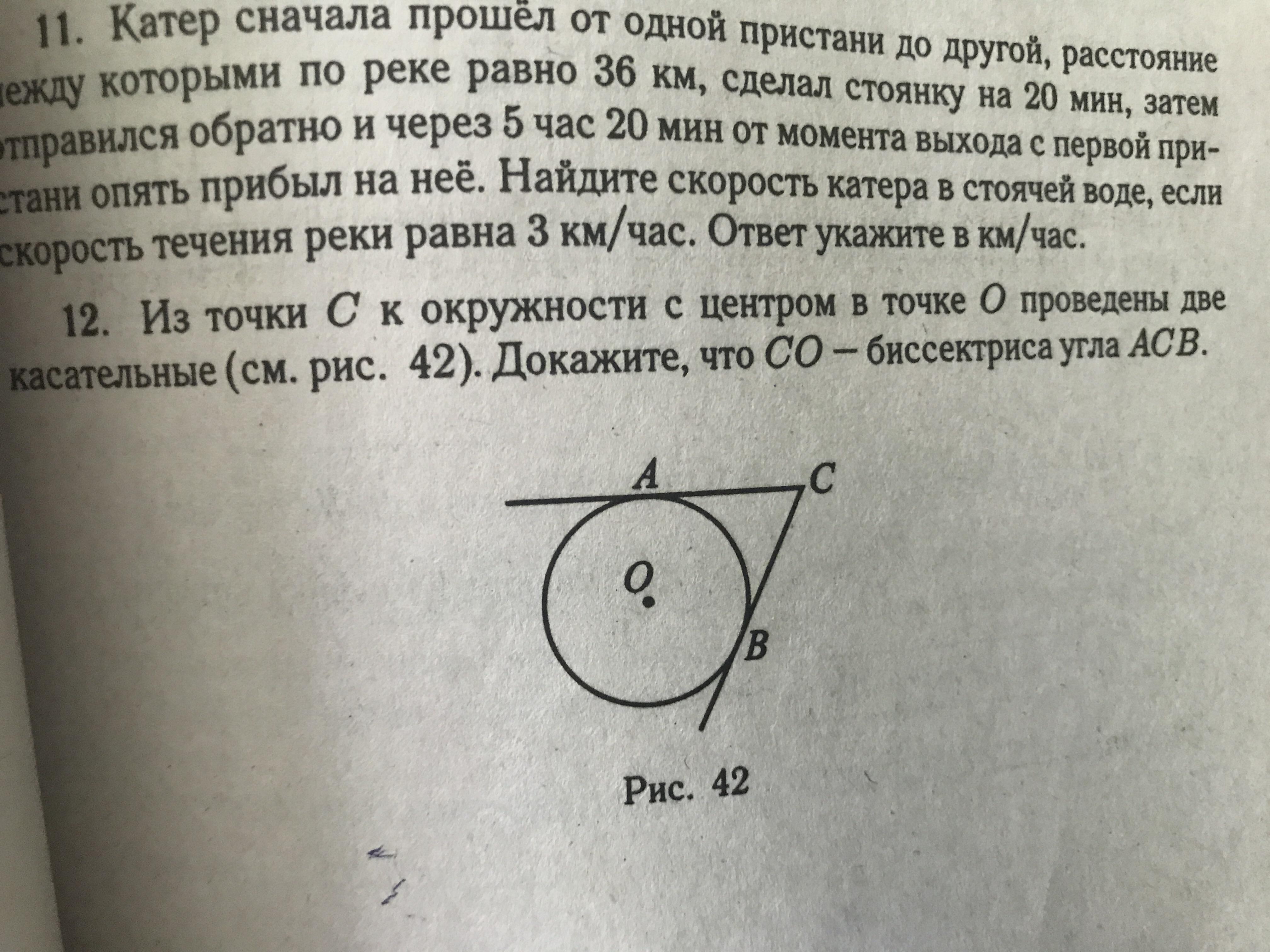 ОА и ОВ равны - это радиусы и они перпендикулярны касательным, т.е. углы по 90 градусов + ос - общая сторона , а если треугольники ОАС = ОВС то углы у них соотв равны - поэтому ОС делит АСВ пополам ...