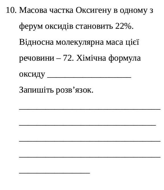 Но если решать, то можно сначала найти массу кислорода, зная его долю: 72*0,22 = 15,84. Затем массу железа: 72*0,78 = 56,16. Или 72-15,84 = 56,16. Молярная масса одного атома железа = 56, кислорода = 16. Следовательно формула оксида FeO.