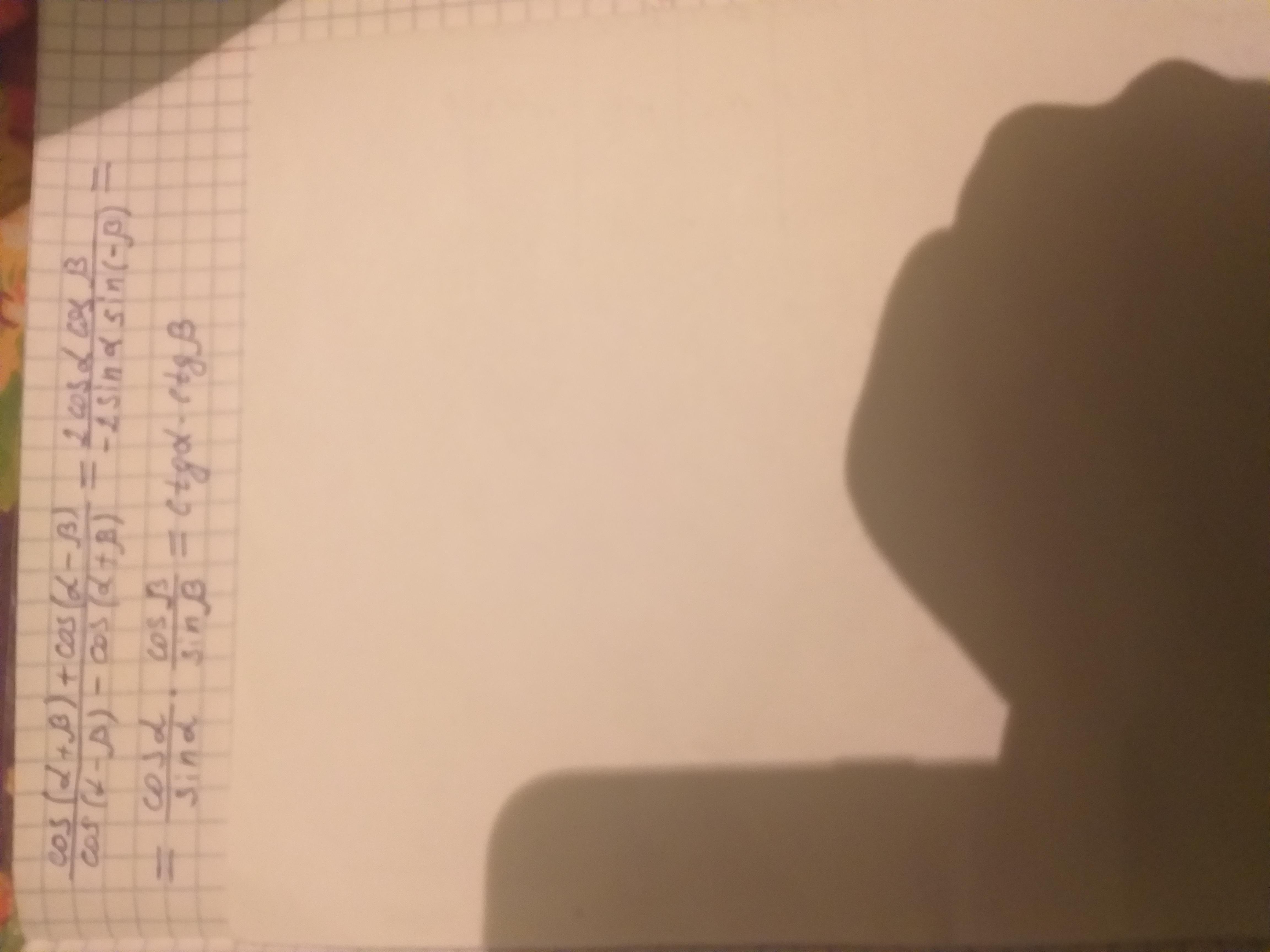 (сosαcosβ-sinαsinβ+cosαcos β +sinαsinβ)/ (cosαcosβ+sinαsinβ-cosαcosβ +sinαsinβ) =2cosαcosβ / 2sinαsinβ=