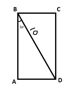 Обозначим прямоугольник буквами ABCD. Пусть ∠ABD=30°, тогда:
