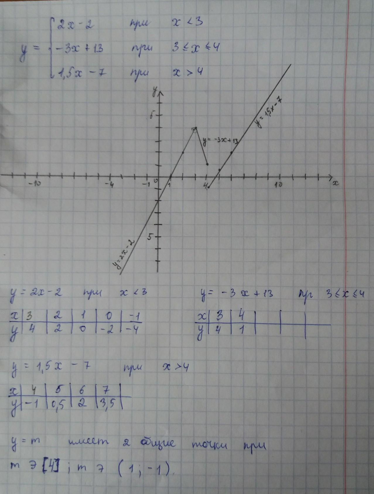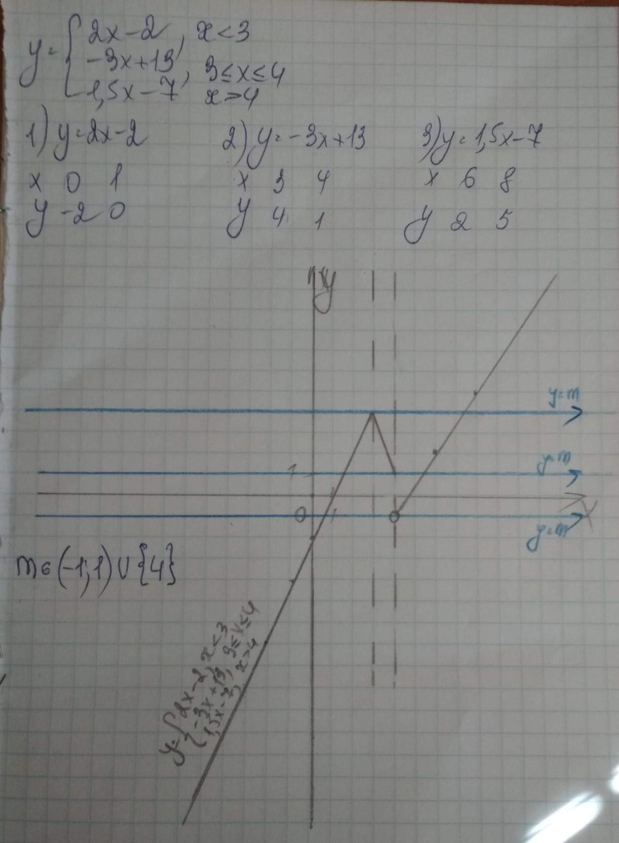 На фото синими прямыми обозначены границы решений m, при которых функция у=m имеет две общие точки с графиком