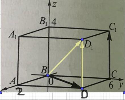 BD₁ = √(a² + b² + c²) = √(BC² + BA² + BB₁²) = √(36 + 4 + 16) = 2√14
