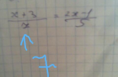 frac{x + 3}{7} =  frac{2x - 1}{5} \ 5 times (x + 3) = 7 times (2x - 1) \ 5x + 15 = 14x - 7 \ 5x - 14x =  - 7 - 15 \  - 9x =  - 22 \ x =  frac{22}{9}