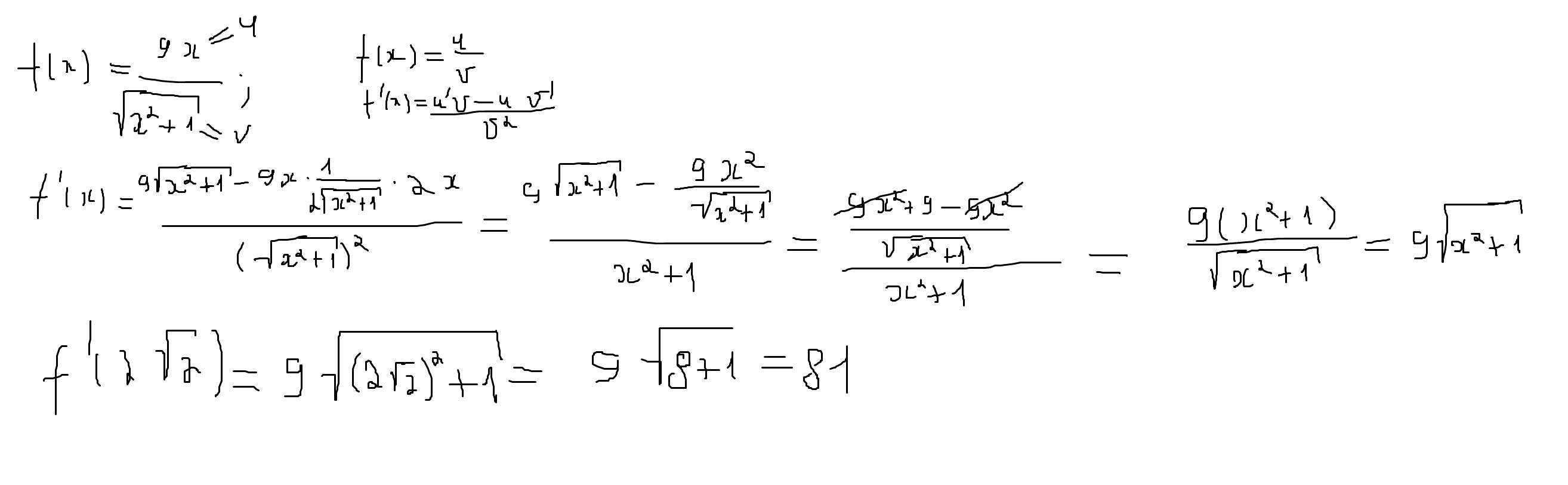 9*(х²+1-х²)/((х²+1)√(х²+1))=9/(х²+1)³/²; в точке 2√2 эта производная равна