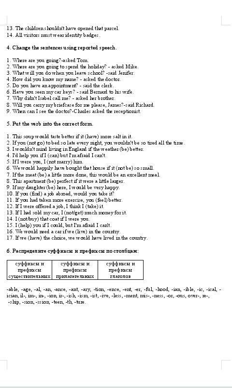 Ответ:6. 1.-age,al,ence,ance,ary,ism,ion,tion,sion,ness,ship,er,ment,in,