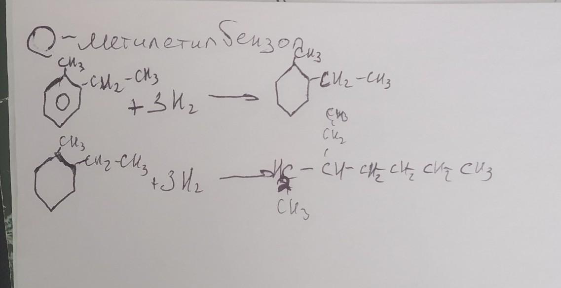 напишите структурную формулу вещества по его названию и выполните реакцию полного гедрирования О-метилэтилбензол дам 40 баллов