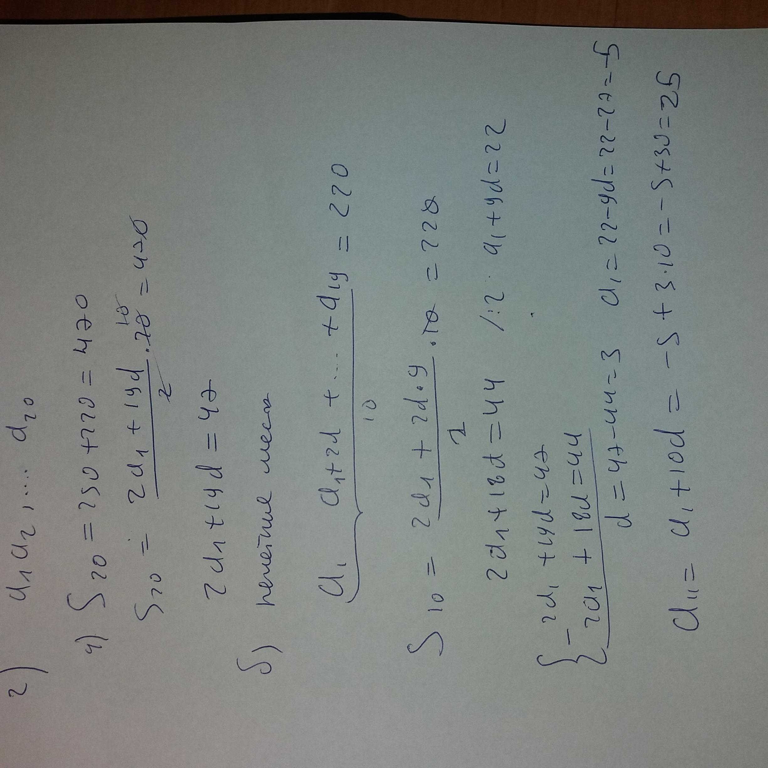 2. S(чет.) = 10*(a₂ + a₂₀)/2 = 250; S(нечет.) = 10*(a₁ + a₁₉) = 220