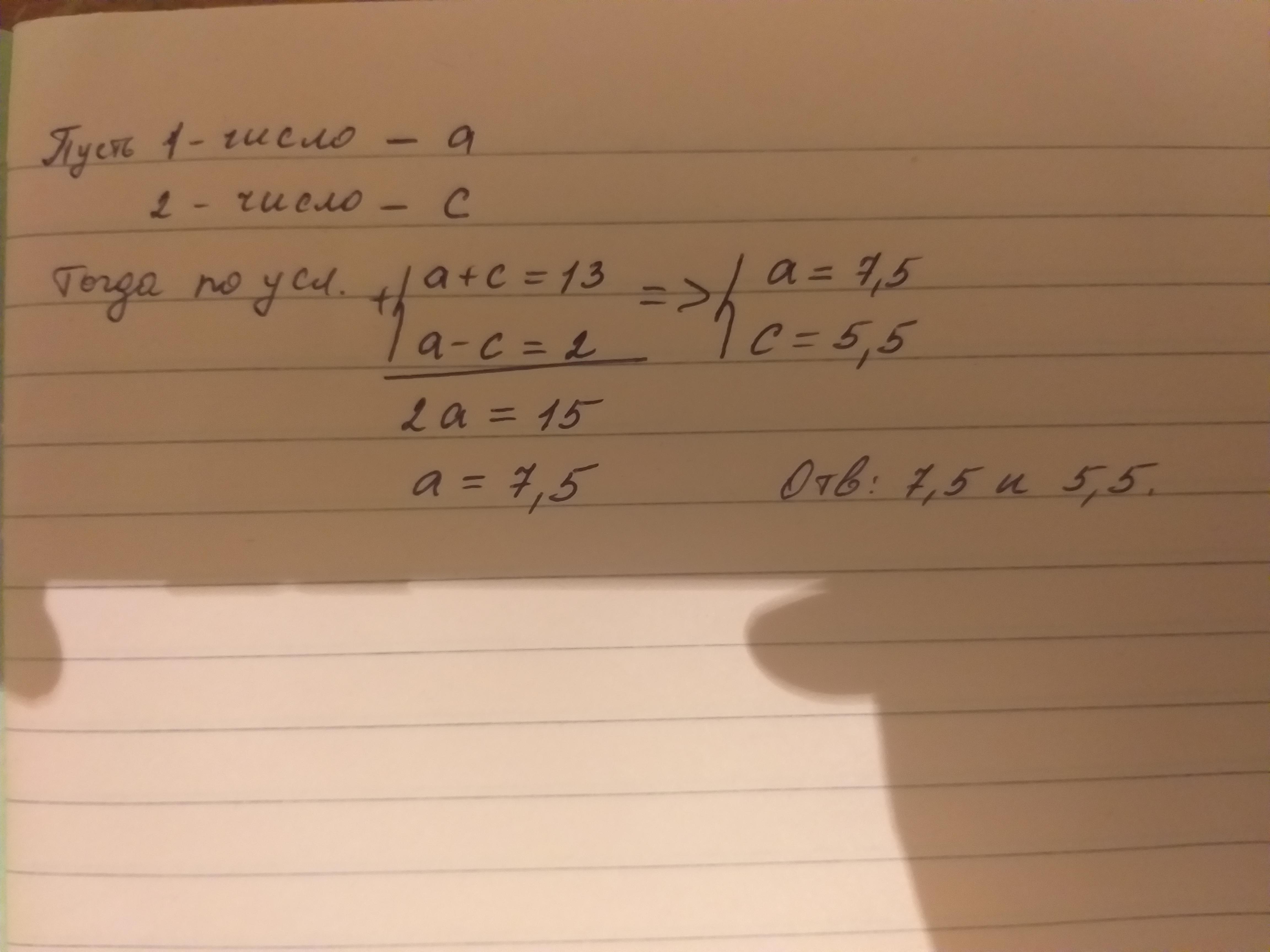 Проверка. 7.5+5.5=13; 7.5-5.5=2