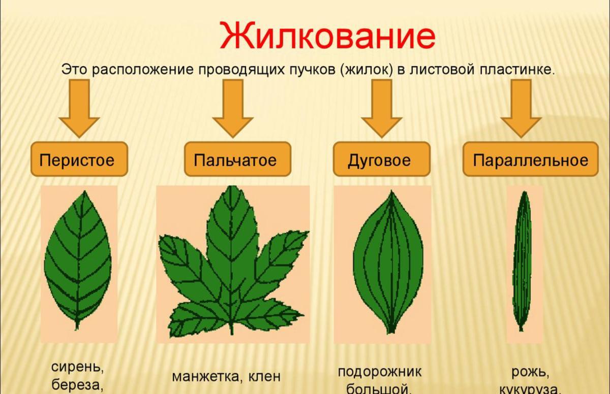 Разные жилкование это значит перистое, паралельное, дуговое, пальчатое.