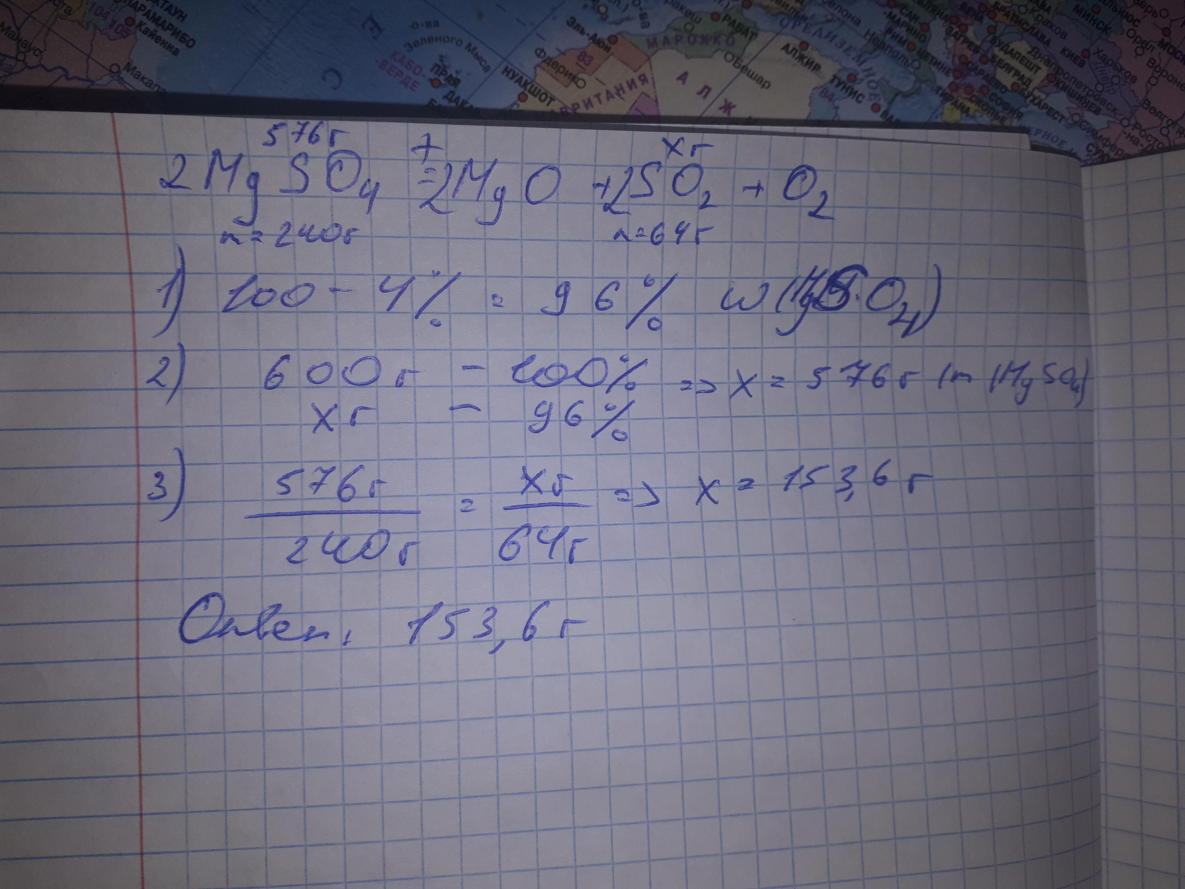 какой объем оксида серы получили при разложении 600 г сульфата магния, если массовая доля примесей в нем 4%