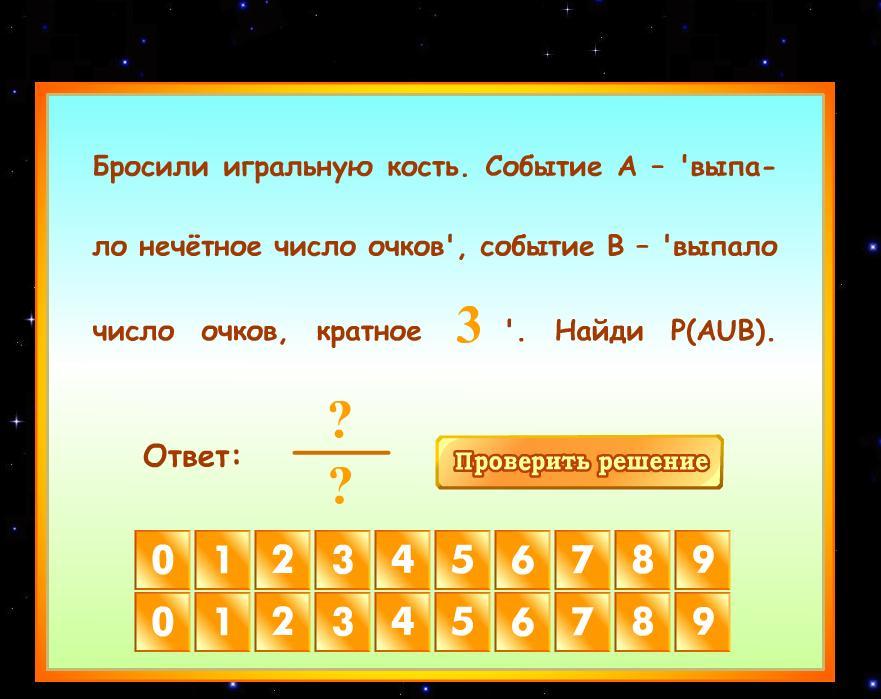 Объединение событий, значит должна выпасть цифра на игральной кости, которая: