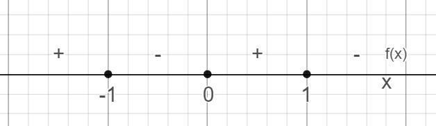 x∈(-∞;-1)∪(0;1) - функция возрастает т.к. производная положительная.
