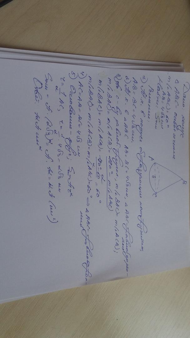 Длина образующей конуса равна 4 корень 3 см, а угол при вершине осевого сечения конуса равен 60°. Найдите площадь основания конуса.