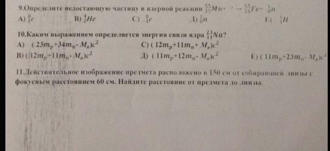 А! Нашел ошибку в задаче №10. Надо : 11 протонов и (23-11) = 12 нейтронов! То есть ответ D) :)))) оЧепятка вышла...